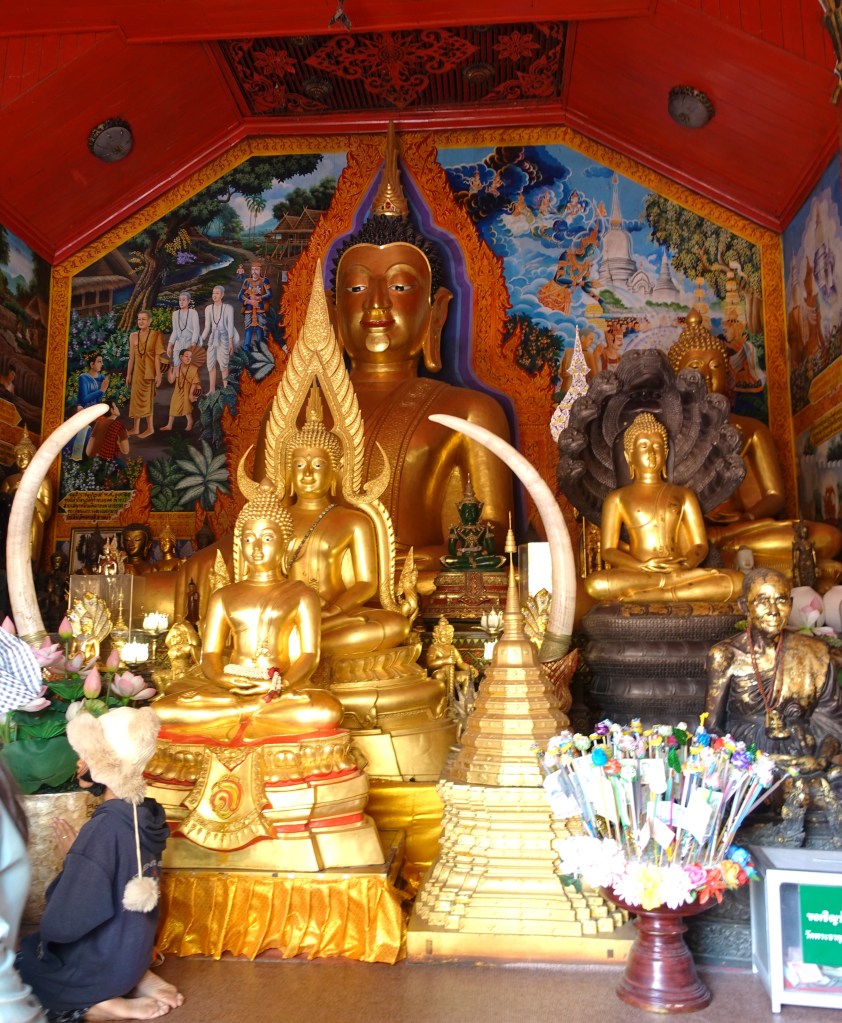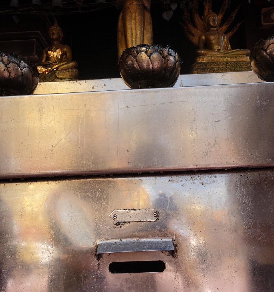 金曜日はタイ語で วันศุกร์ ワン・スゥック、金曜日生まれの人はこの守護仏の前の「 ศุกร์ 」スゥックと刻まれたところにお賽銭を入れてお祈りをする
