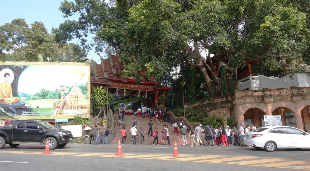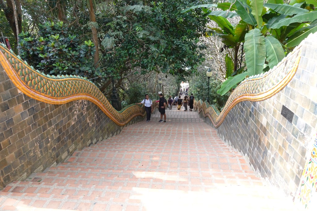 ドイステープ寺院へのお参りは、ケーブルカーが出来てからは、登りはケーブルカーで、帰りは長い階段を歩いて下りている。