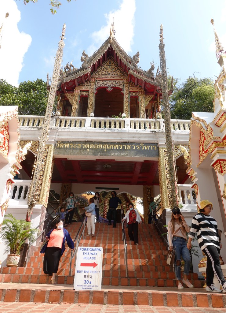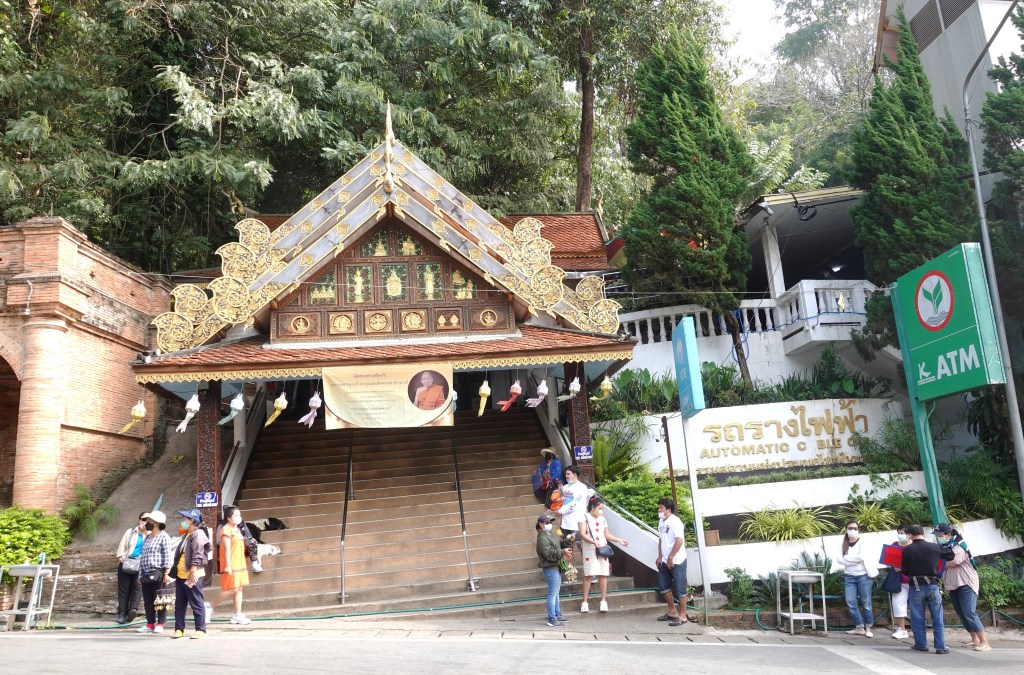 ドイステープ寺院の正式名称は、วัดพระธาตุดอยสุเทพราชวรวิหาร ワットプラタートドーイステープラーチャウォーラウィハーンと書いてある。階段を登って来るとここにたどり着く。ドイステープ寺院の玄関口である