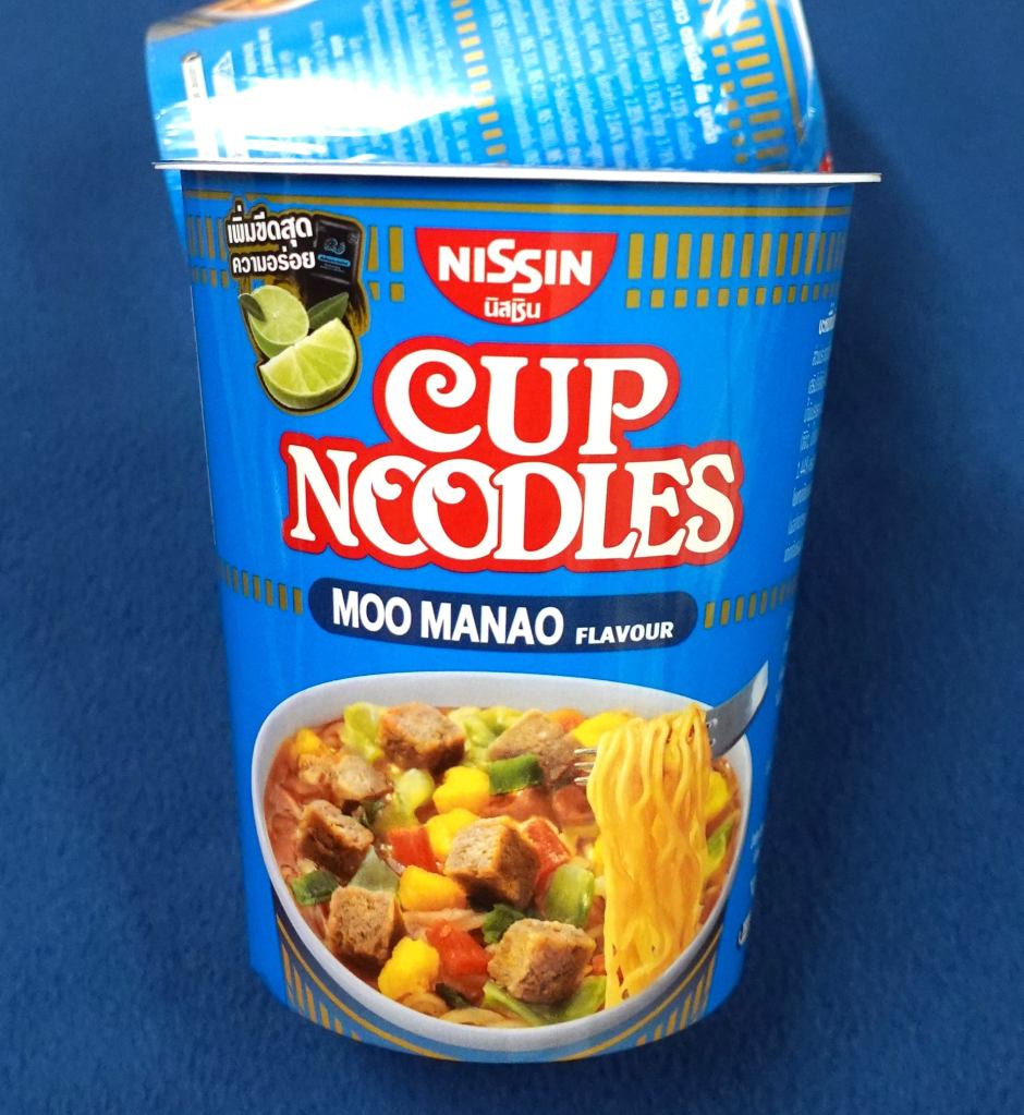 スーパーで山積みされていたタイ日清製造の大辛カップ麺「ムーマナオ」を買って食べてみたら、とても美味しかった!