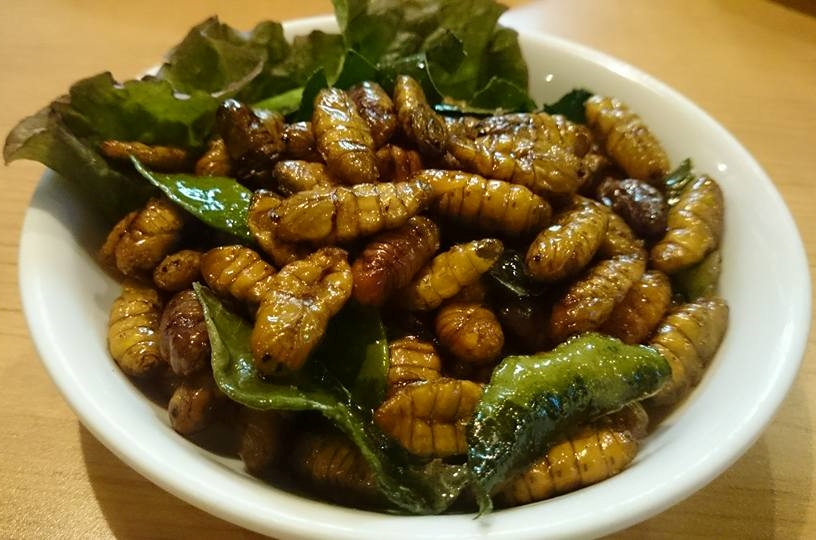 【脱線1】東京のタイ料理屋で「カイコ料理」を出してくれるところもある。カイコの味がよく分かる。