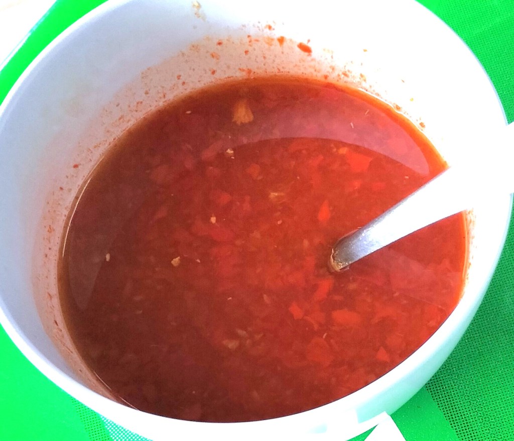 「ナムプリックオン」 น้ำพริกอ่อง 豚ひき肉とトマトから作られ、カオニャオや温野菜や新鮮な生野菜と合わせて食べる フアンムアンチャイ