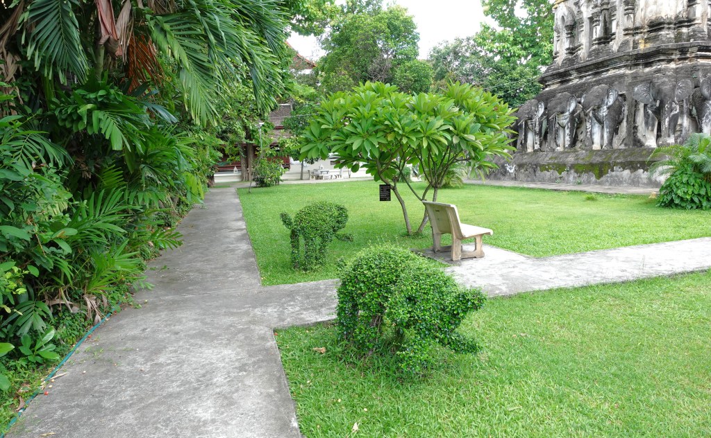 象の仏塔は周りを15頭の象によって支えられているのが特徴的である。小本堂には、歴史上重要な水晶の仏像「プラセータンカマニー」と、インドから渡来したと云われている彫像「プラシーラー」が安置されている。布薩堂にはラーンナーの歴史が刻まれた石碑があるが、ラーンナー文字で書かれているためタイ人も読めないという。