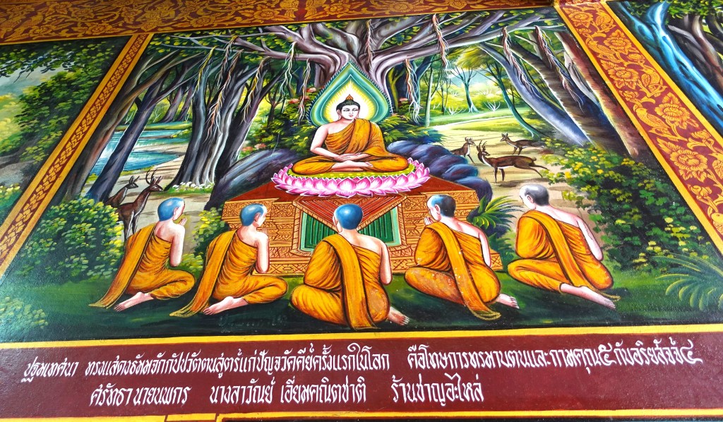お釈迦様が菩提樹の下で1,250人の僧侶に説教をしているところ