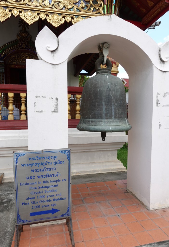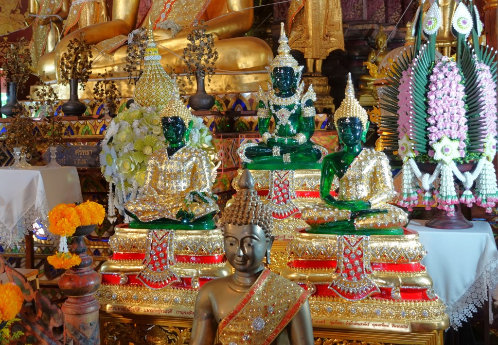 たまたま近くにお坊さんがいらしたので、この仏像はキレイですね、と話しかけたら、「エメラルド3仏で、タイにはルドゥローン(暑季)、ルドゥフォン(雨季)、ルドゥナーウ(乾季)の3つ季節があり、羽織っているものが違うでしょう」と