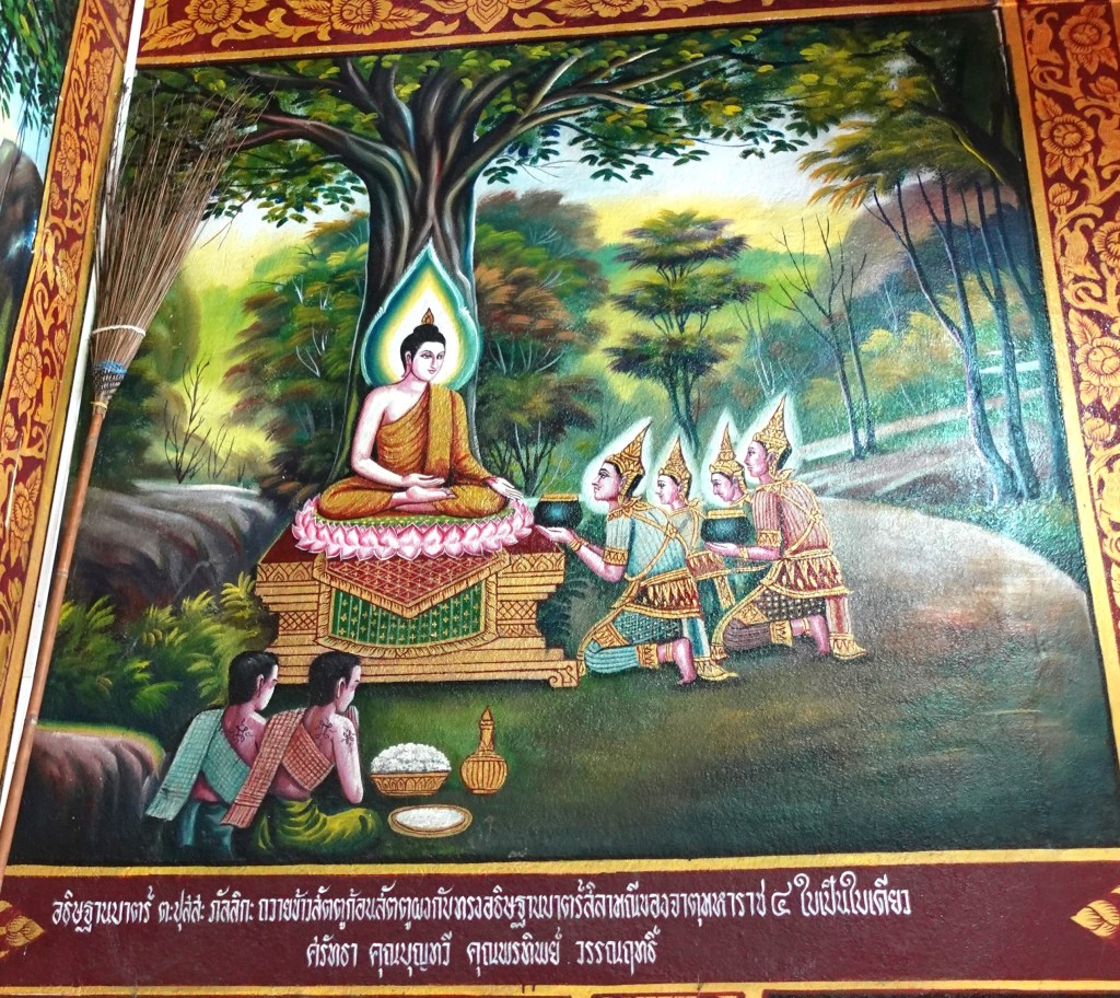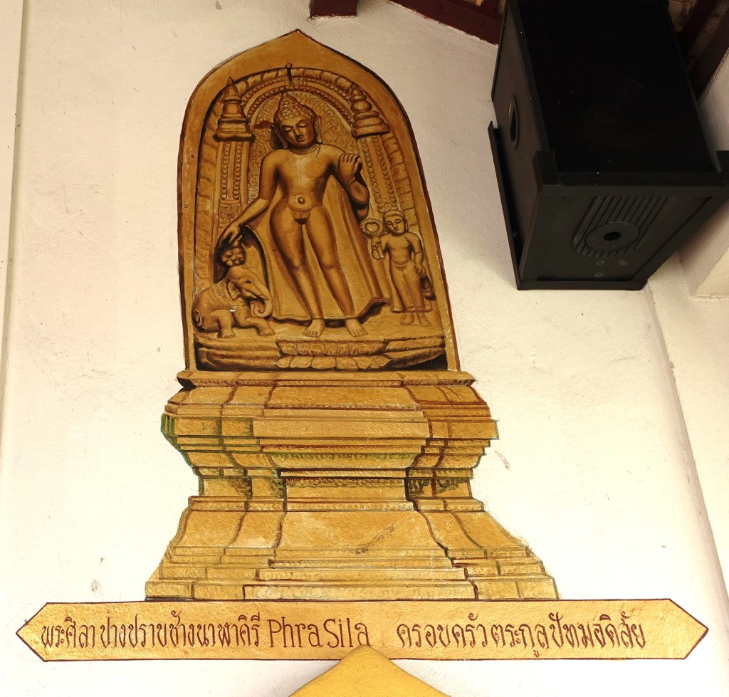 小本堂の入口の右上の壁に描かれている「プラシーラー」 (Phra Sila, พระศิลา)