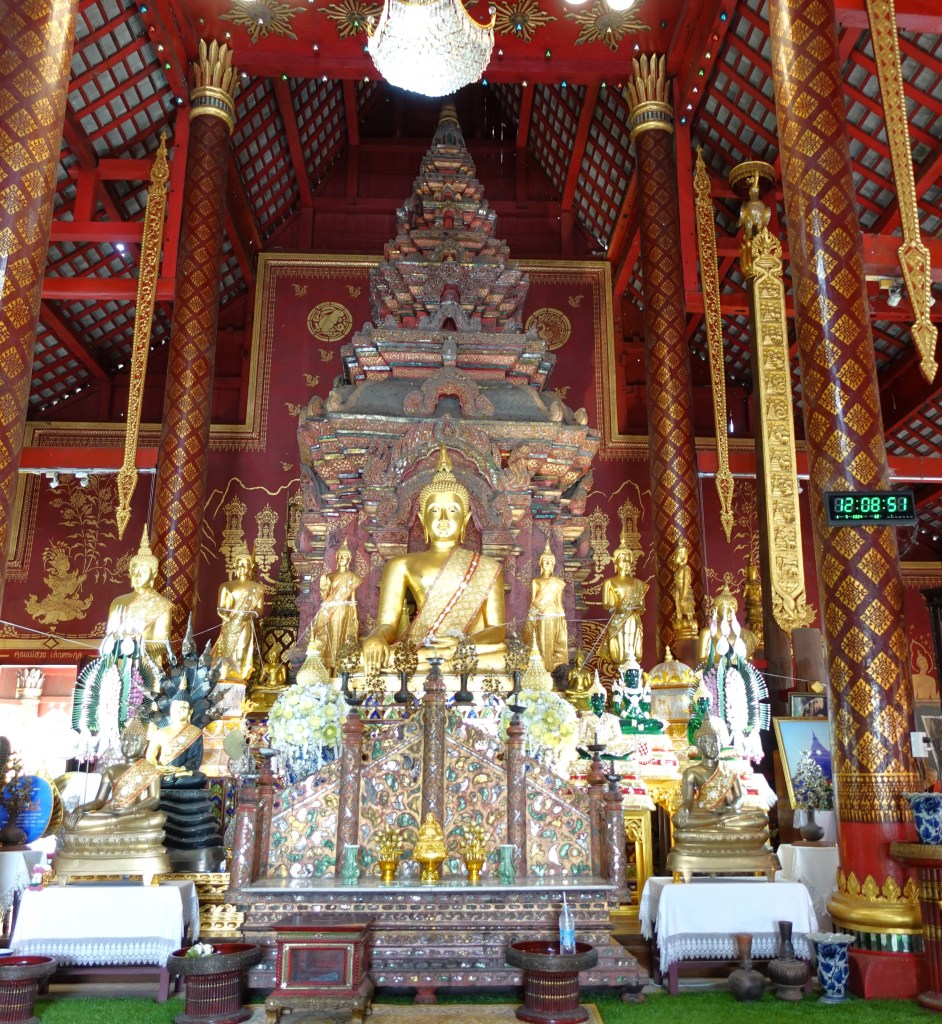 祭壇左側にはラーンナー王国の祖メンラーイ王の写真が飾られている。 仏立像の1体には、その基部に西暦1465年を示す年が刻まれており、ラーンナー王朝に制作された最も古い彫像である。そしてそれは托鉢の鉢をもつ仏像としてタイ最古の仏像である