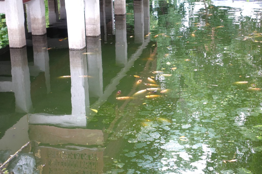 経典など大切なものを収納する蔵 架け橋の両脇には守護神ナーガ(蛇神)が護っている 蟻などの害虫から守るために池の上に建てられている