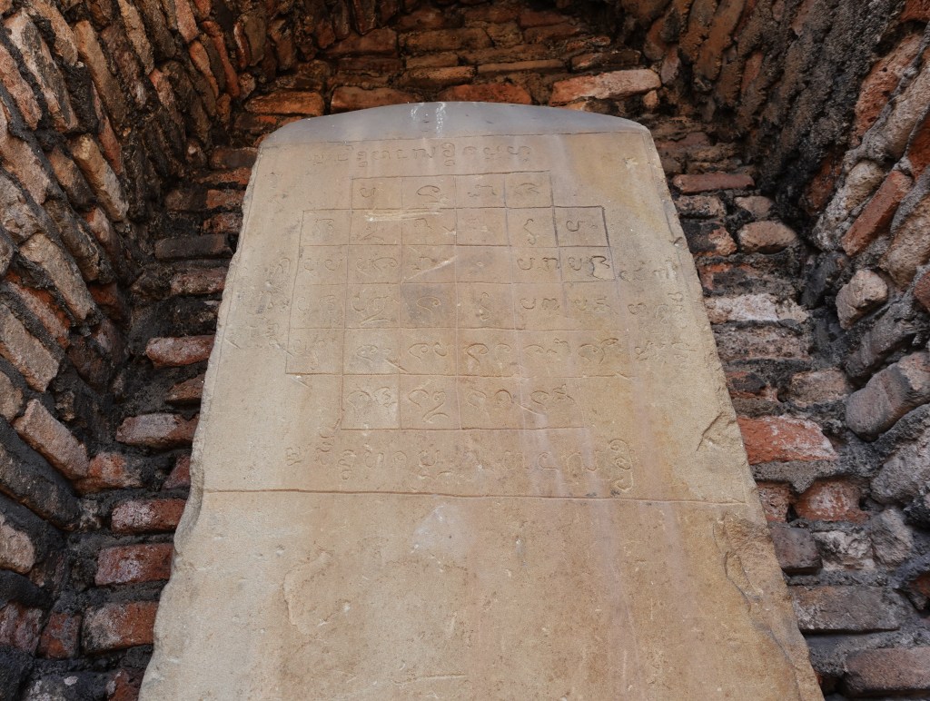 城内に向かって右の門柱の壁龕に、チェンマイ人でも読めないランナー文字が刻まれた石柱が納められている。これはたいへん興味深い。
