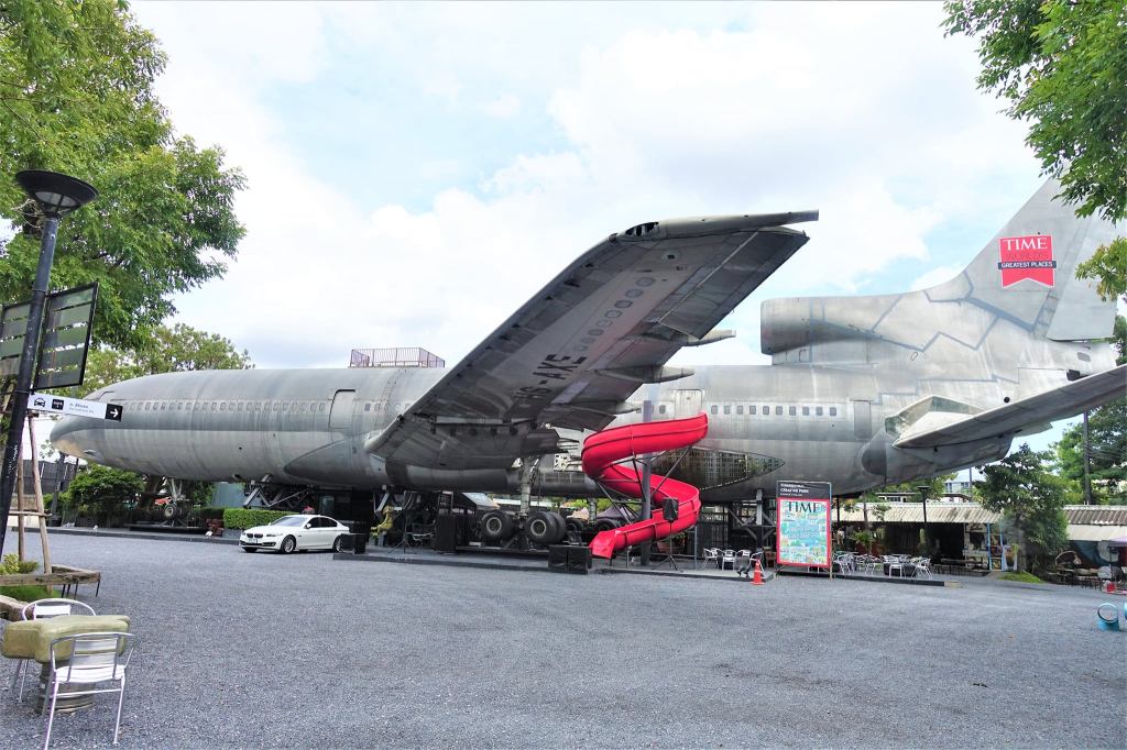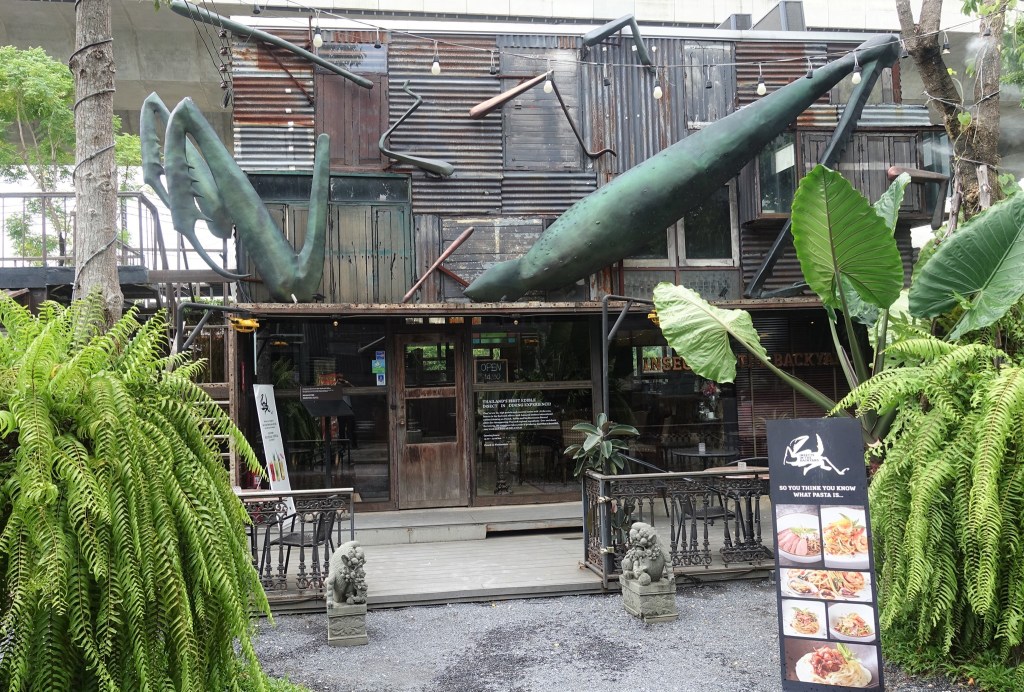 この昆虫レストランは、バンコクで最も奇抜で独創的なチャンチュイ・クリエイティブスペース内にあり、近くには実物の旅客機のオブジェがある。