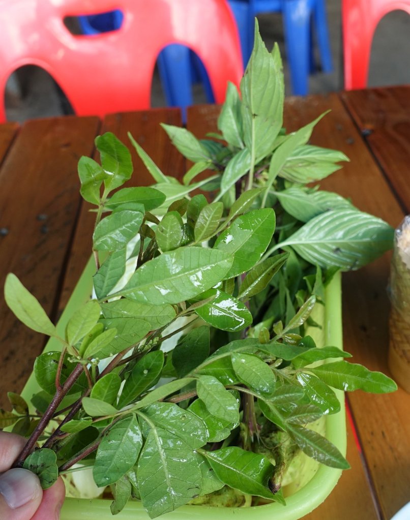 うす緑の小さな丸ナスをかじりながら食べた辛いラープイサーン。新鮮なハーブの風味が口の中いっぱいに広がる…これだよこれって感じ。言葉では言い表せない美味しさでる。なんだか分からない葉っぱも何気に美味しい!