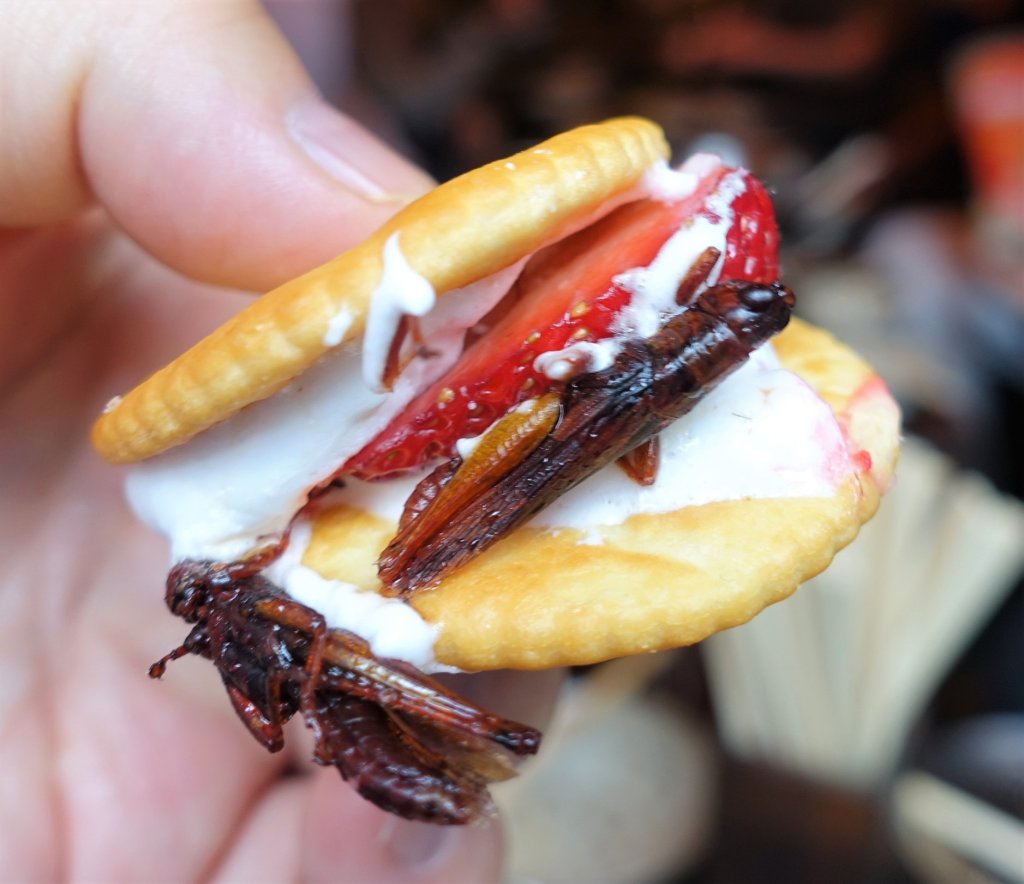 イチゴとイナゴのマシュマロビスケット(春苺とマシュマロから虫がこんにちは)