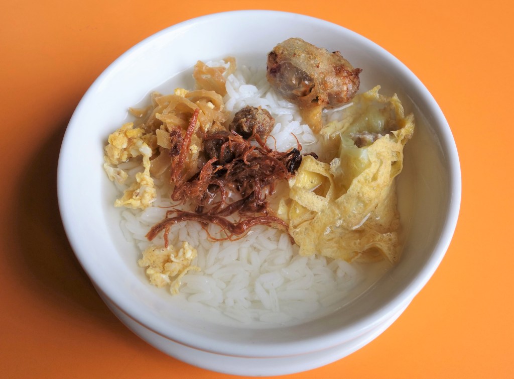 タイの旧正月に食べるタイ風お節料理「カオチェー」は、ぱさぱさの冷めたご飯にジャスミンの香りのする冷たい水をかけ、盛り合わせの食材をのせて食べる。