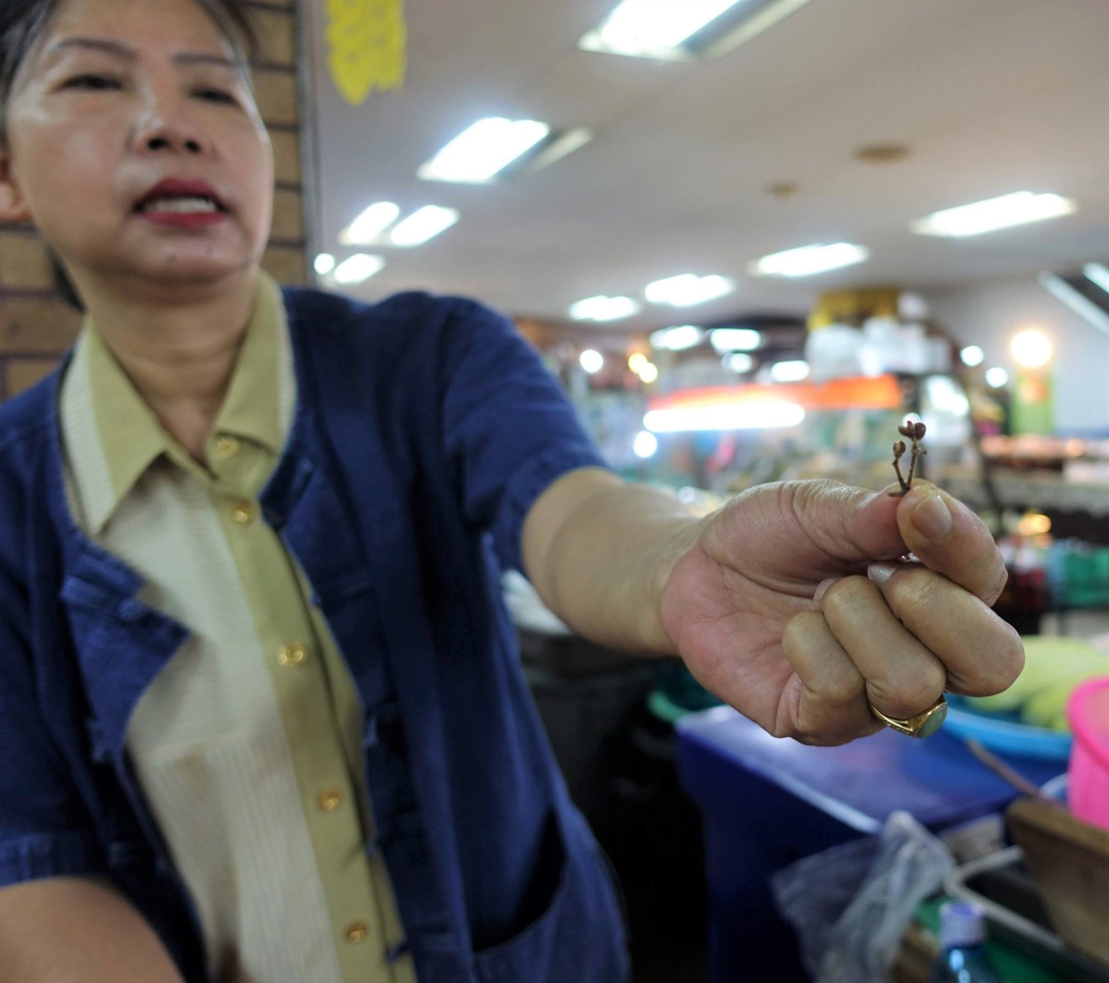 ②クンテープ 女性がつまんでいる食材、「食べてみて、香りがいいから」と差し出してくれた。