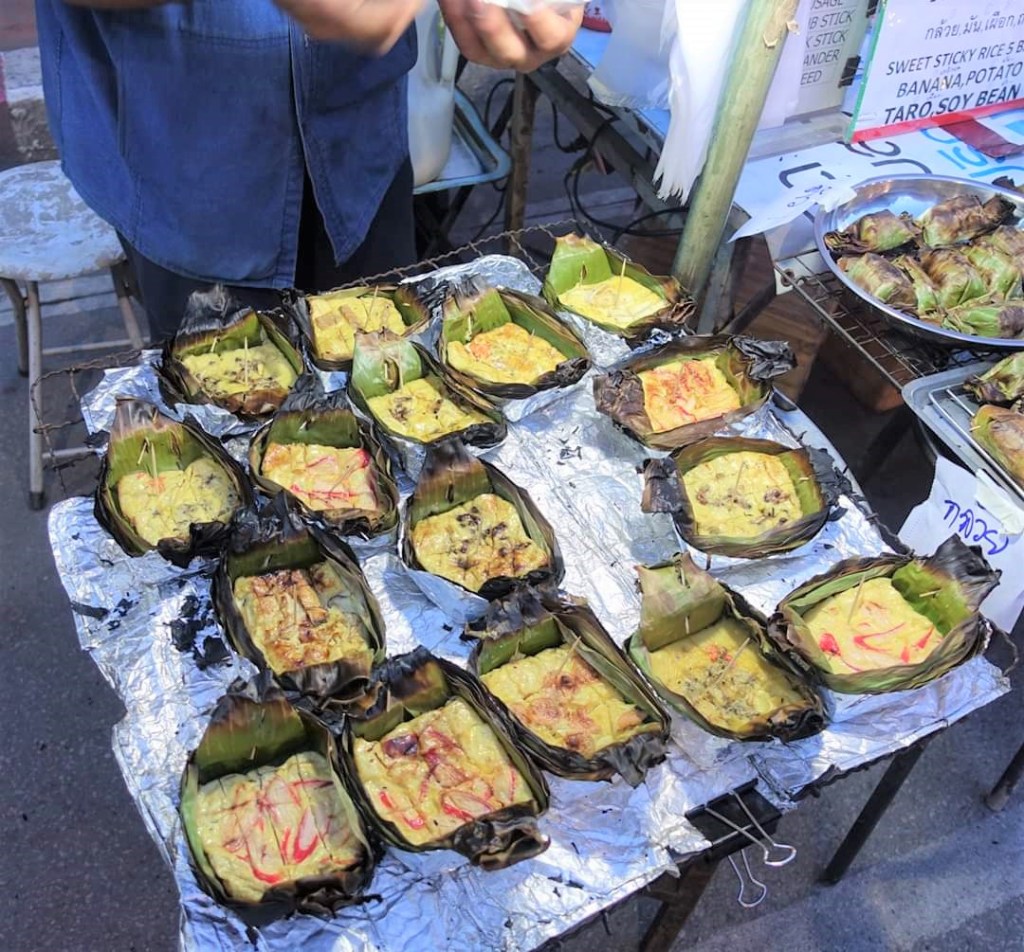チェンマイの日曜夜市を歩くと郷土料理カイパーム(チェンマイ風卵焼き)を見かける。