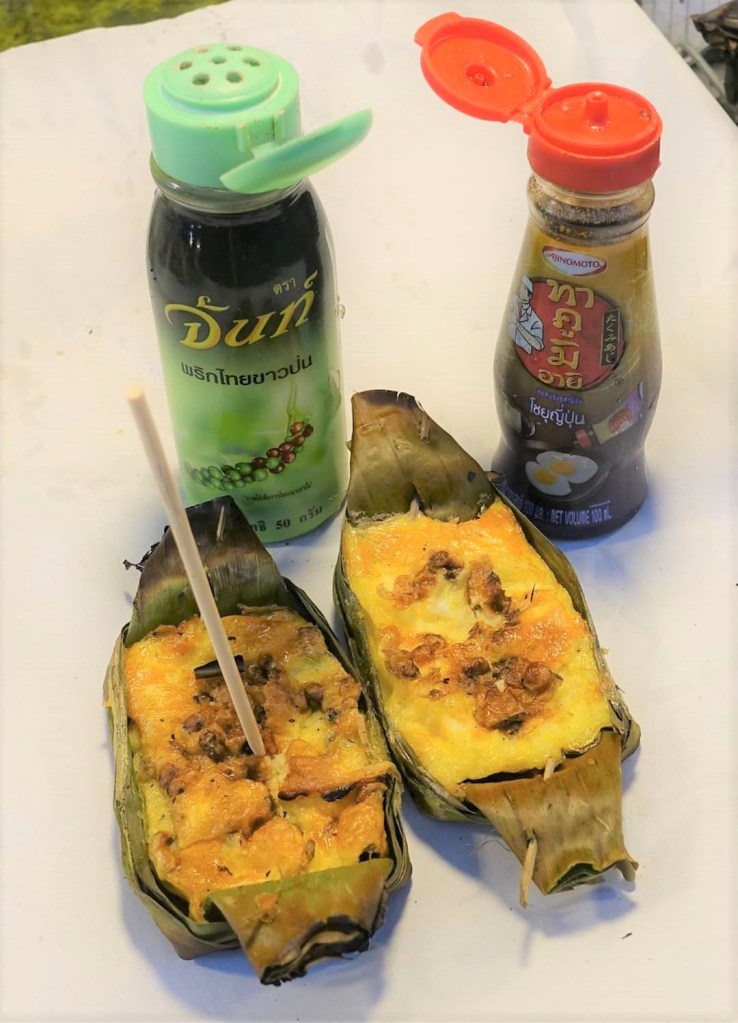 タイ胡椒プリックタイをふり、タイ製醤油をたらして食べると立派なチェンマイの郷土料理って感じになる。どこもだいたい1つ20バーツ。