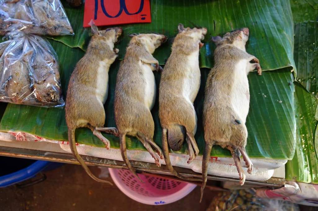 同じ市場でネズミが売られていた。体はぷよぷよして、やわらかかった。1匹100バーツ
