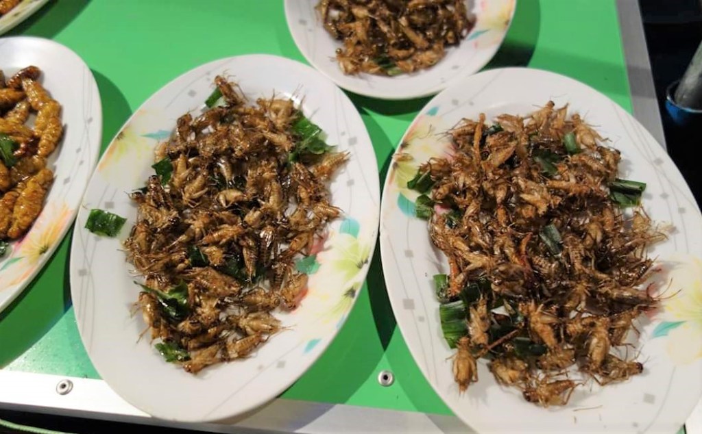 たしかにイエコオロギは昆虫食入門にはいい。一皿20バーツ