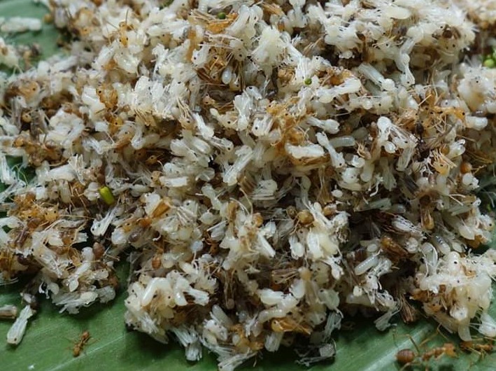 この赤アリは樹の上にいる、と教えてくれた。赤アリだけでなく野菜や魚も売っていた