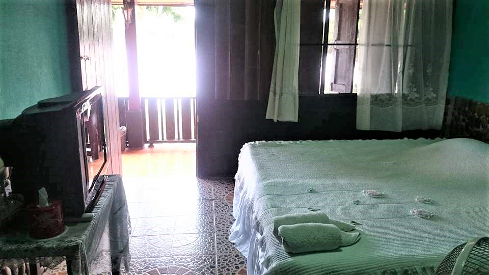 チェンコーンで泊まったゲストハウス 部屋の外にテラスがあり、目の前をメコン川が流れている。簡単な朝食付きで1泊350バーツ