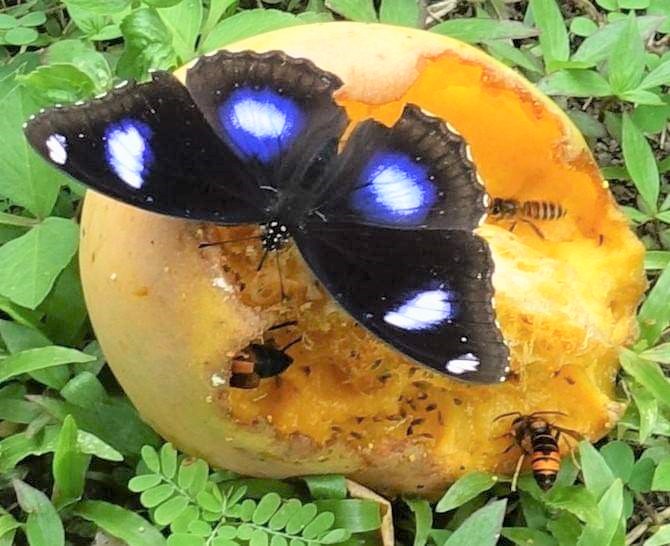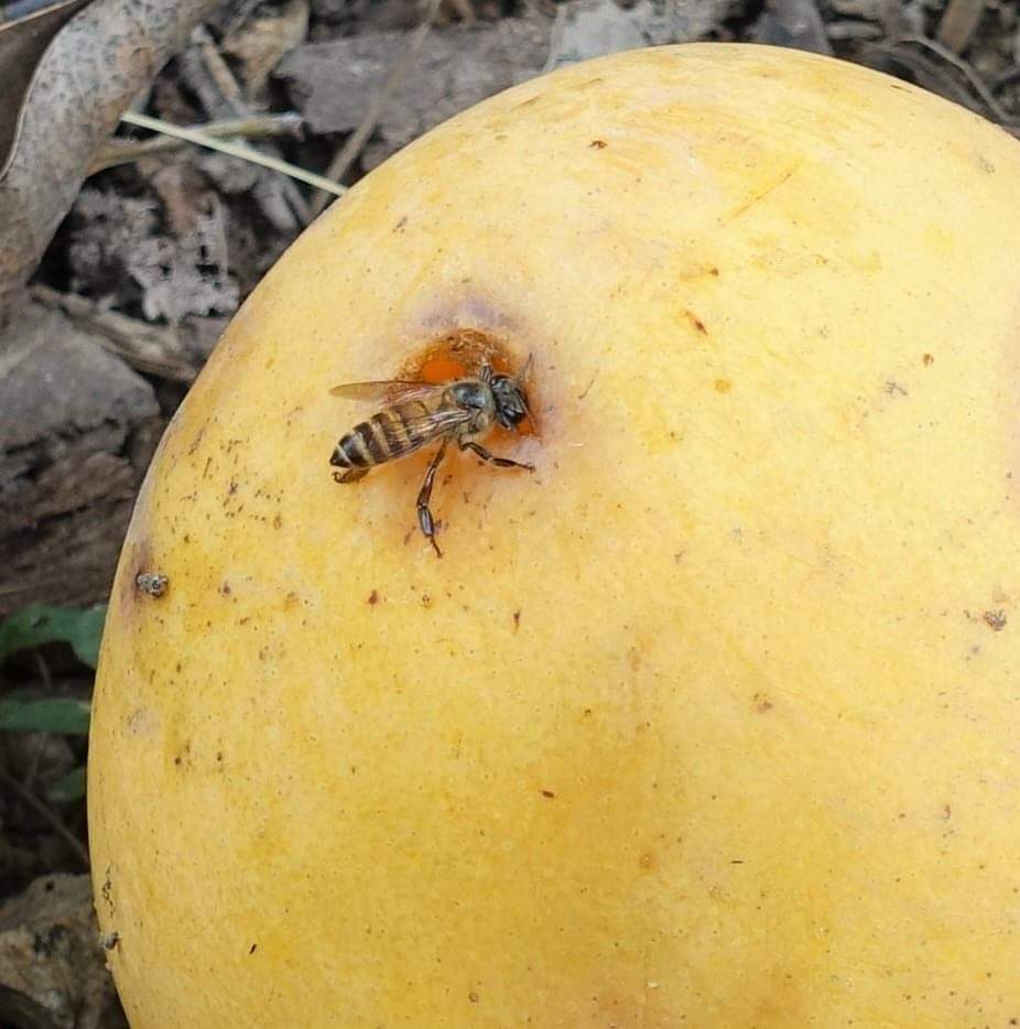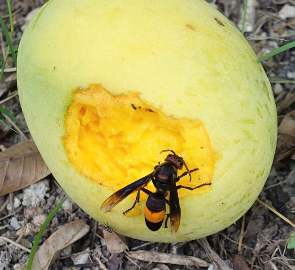 落果したマンゴーを食べる虫たち