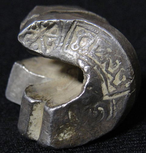 チェン(Chieng)貨幣 Mitchiner(1998)の分類 Stage four 62.00 g 銀 4バーツ 15世紀~1556年 両アームの3つの刻印は前から,「法輪(輻は6本)」「Sen(Chiengsen)」「4(ランナー文字)」 チェンセーン