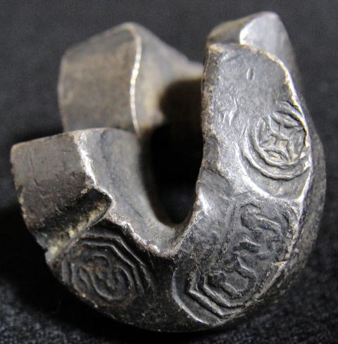 「四つ葉」「Mai(Chiengmai)」「4(ランナー文字)」 61.19 g 銀 1350~1545年 チェンマイ