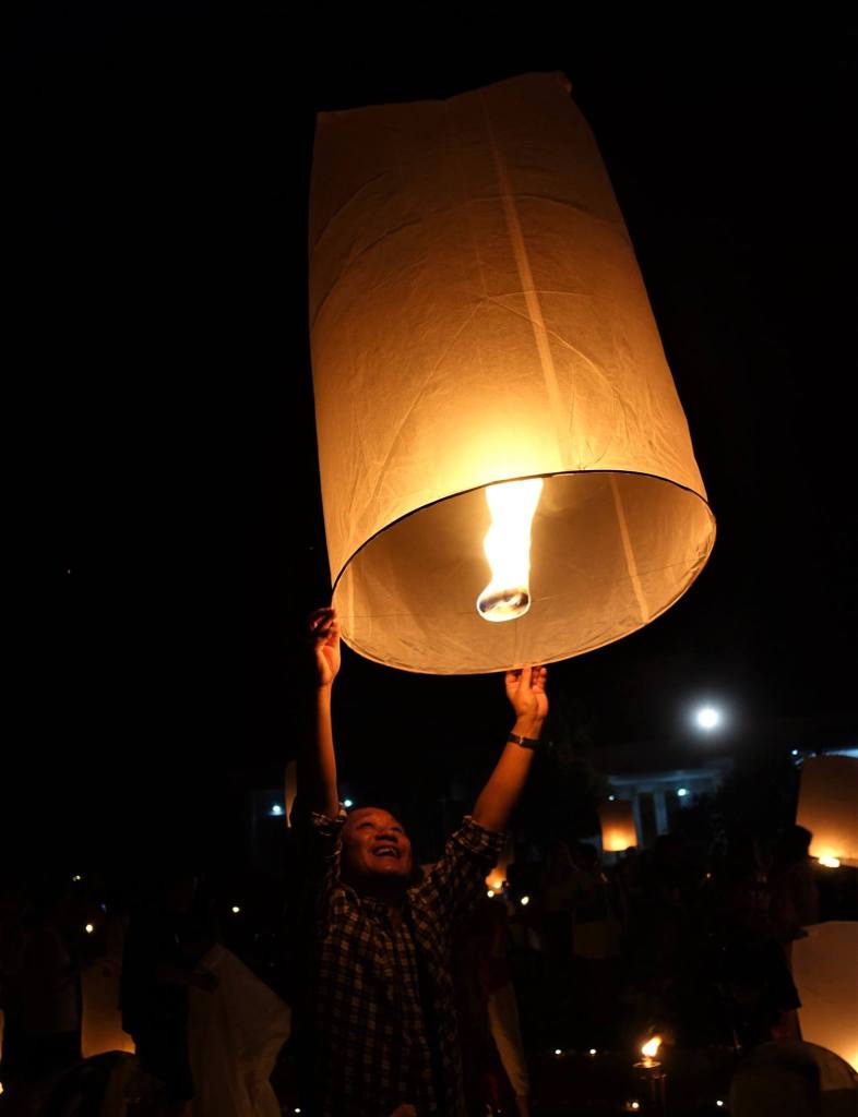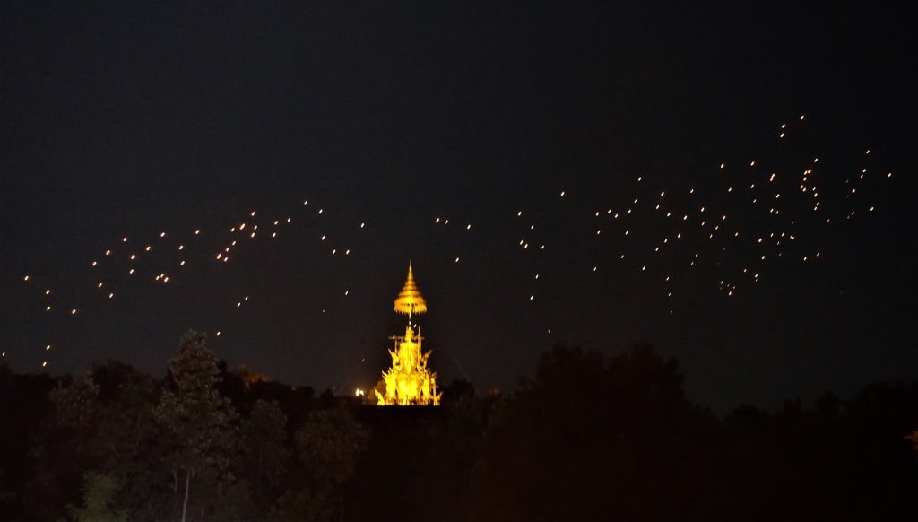 初めての体験だったが、夜空に舞うコムローイはとても幻想的だった。