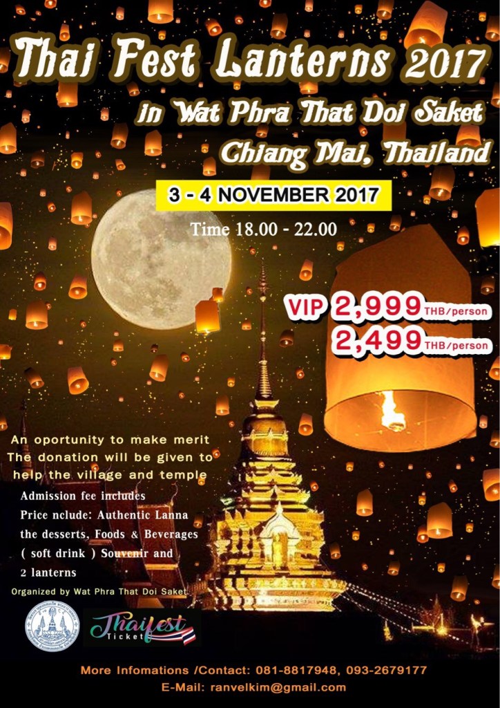 このツアーは、送迎付き、ガイド付き、コムローイ(最大5個まで)付き、カントークディナー付き、お土産付きで2,999バーツ(約1万円)だった。2017/11/3