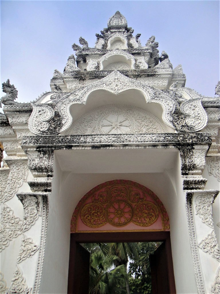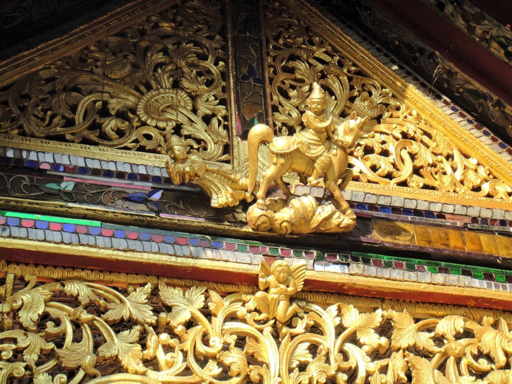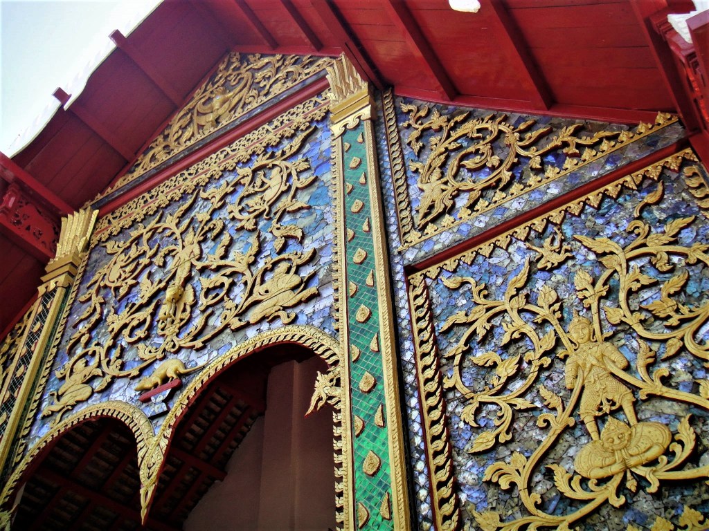 アーチ型門をくぐると木造建築のお堂がある。これはタイ国内で最も古い木造建築のひとつとして知られている。3層屋根はランナー初期の造形