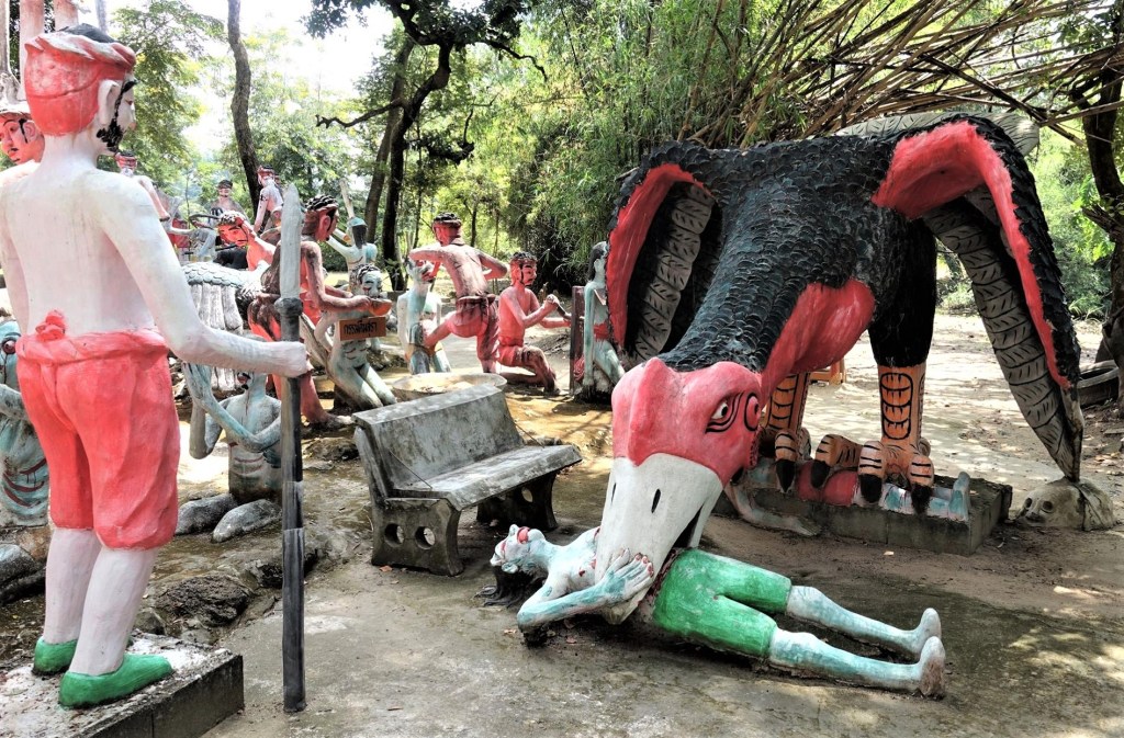 田園地帯の中にあるロイエットのワット・パノンサワン寺院「地獄寺」、市街地からトゥクトゥクで小一時間かかった。