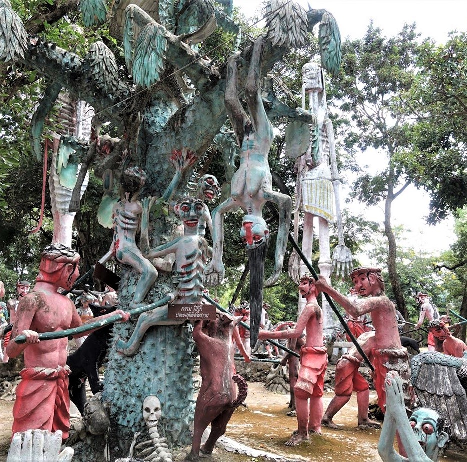 そもそもタイでは地獄の思想は仏教に基づいていて、地獄思想を形成したとされる経典『三界経』の中に「悪いことをすると地獄へ堕ちる」ということが細かく説かれている。