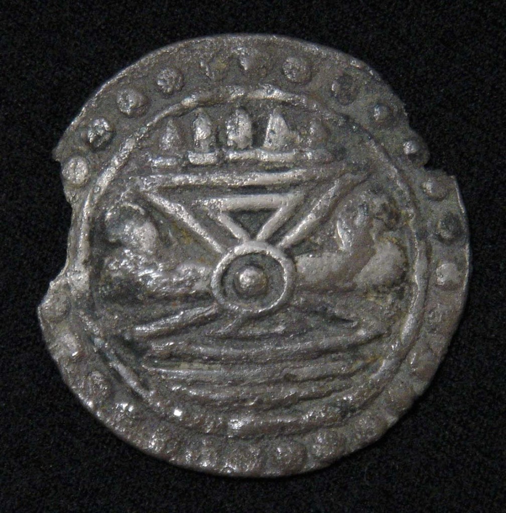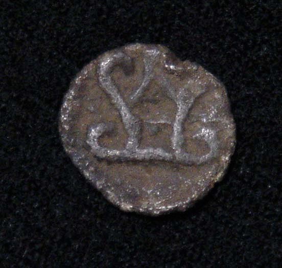表面はユパ,裏面はスリーヴァッサ. 6世紀 銀 9.3 mm 0.42 g スリーヴァッサの中に飾りはない