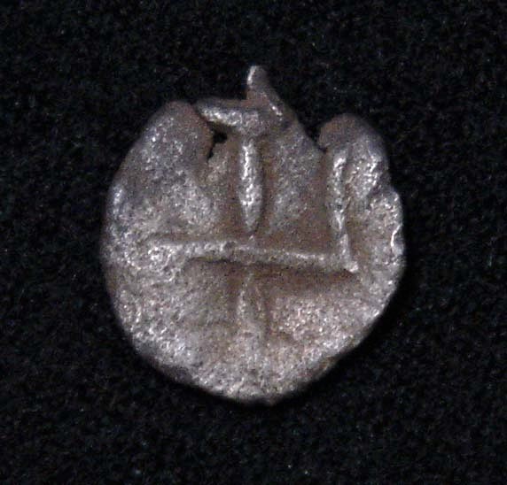 表面はユパ,裏面はスリーヴァッサ. 6世紀 銀 10.2 mm 0.30 g スリーヴァッサの中に飾りはない
