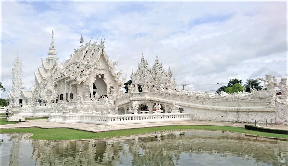 タイで一般的に見られる寺院や仏像は黄金の輝きがあるが、「黄金」は人々を喜ばせた結果の色で、「輝き」は迷いを除いて願いを叶えるという意味がある。しかし、南国に降った雪のように純白に輝く寺院があるが、それが「ワットロンクン」、別名「ホワイト・テンプル」である。