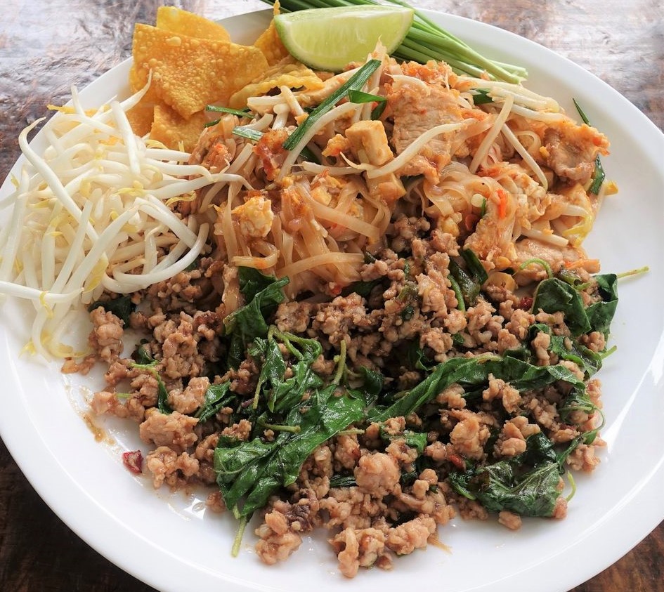 豚挽き肉のガパオ炒めパッタイ ガパオとパッタイのダブル
