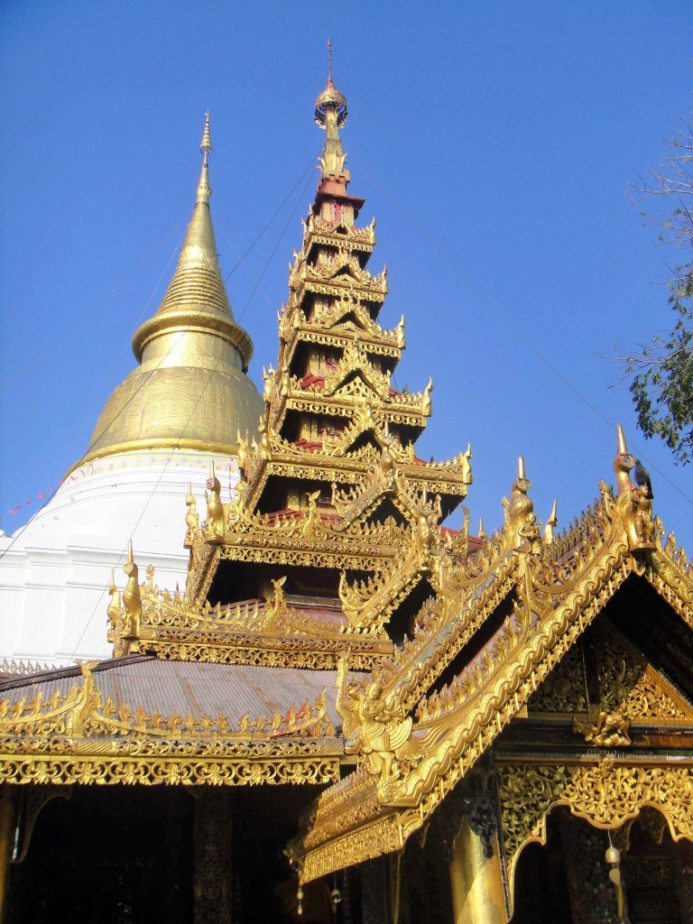 幾重にも重なる屋根がのったタイ最大のビルマ様式の「ワットシーチョム寺院」