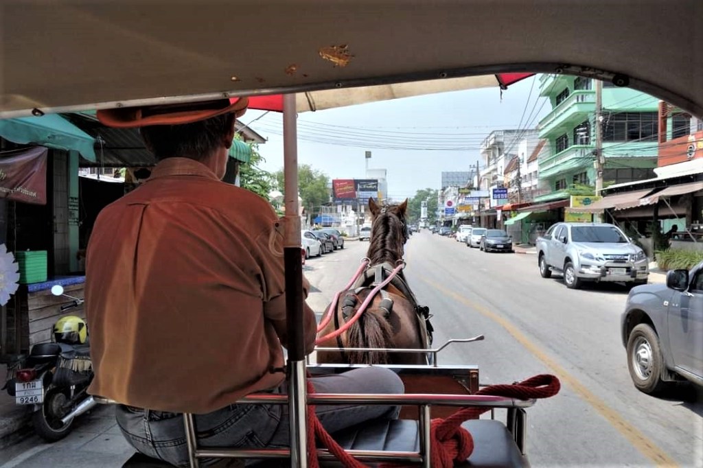 馬車に乗り、ランパーンの人々が誇りにしている「ワットプラケオドーンタオ寺院」やタイ最大のビルマ様式「ワットシーチョム寺院」などを巡った。