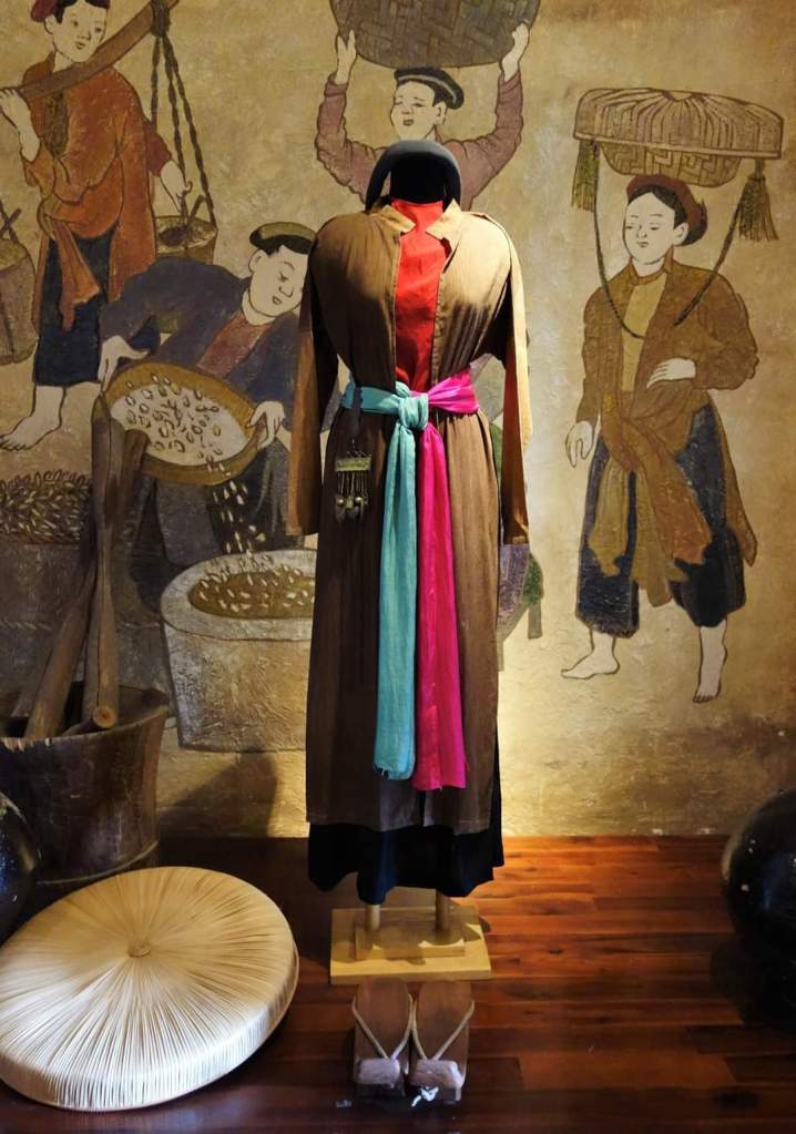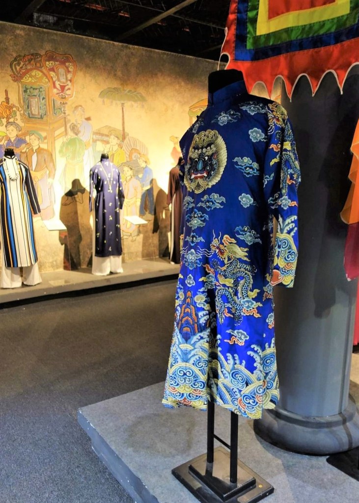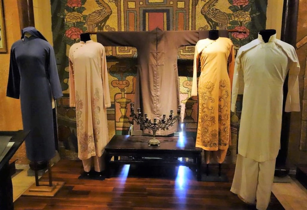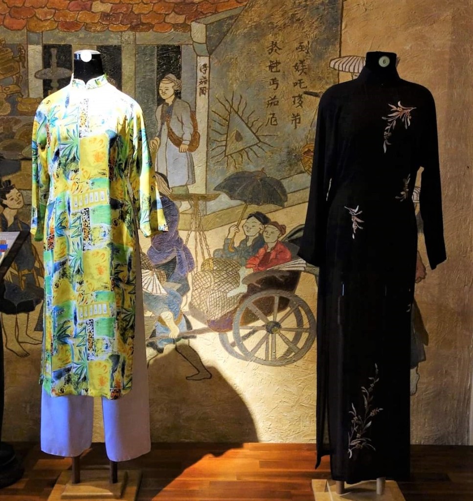 アオザイをまとった素敵な女性が、ひとつひとつ丁寧にアオザイを解説してくれた。彼女はアオヤイと言っていたが、ベトナム北部ではアオザイといい、南部ではアオヤイというそうだ。