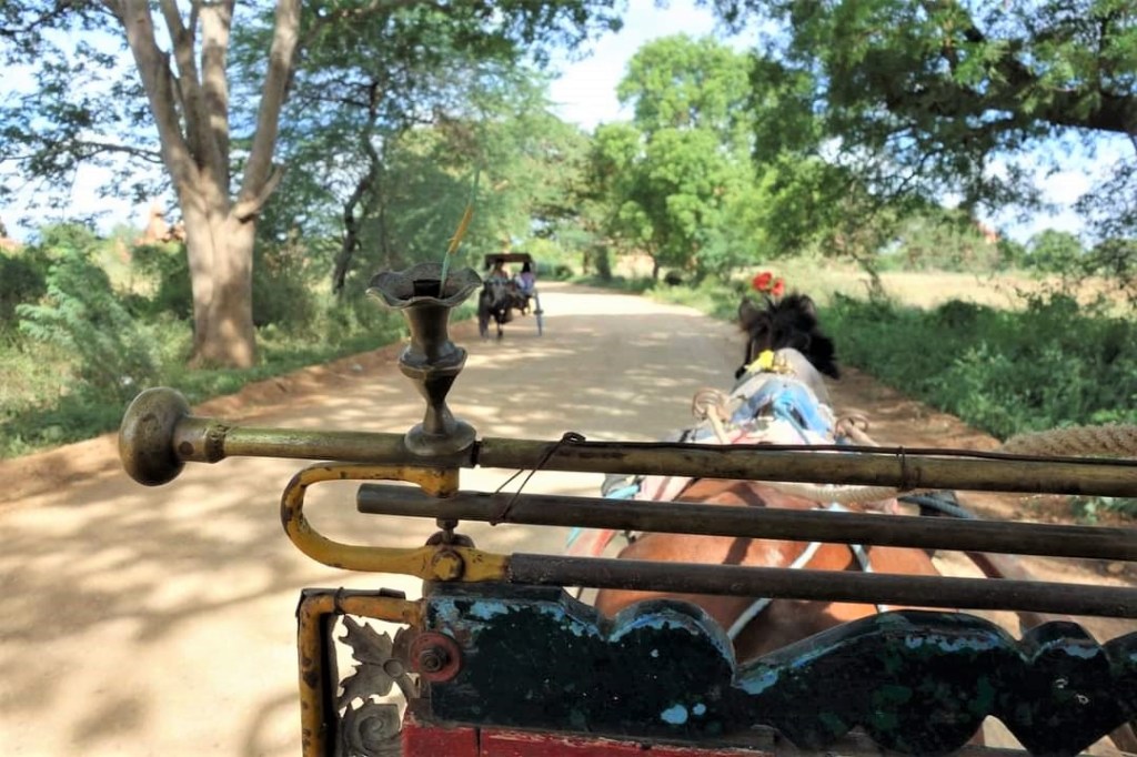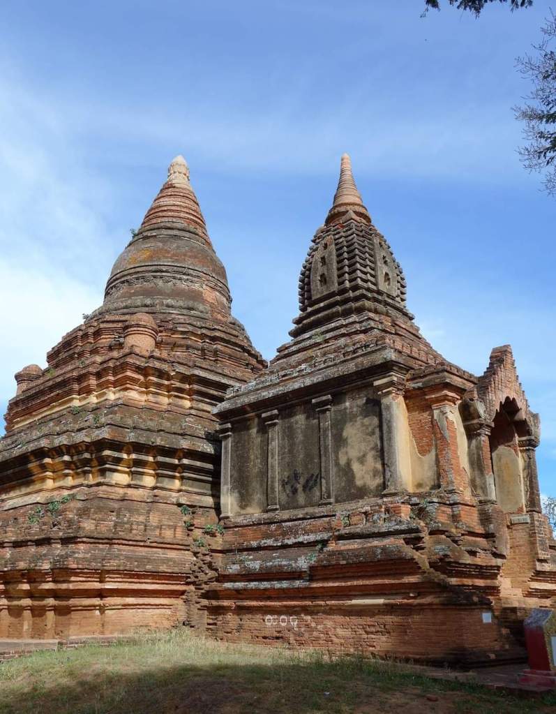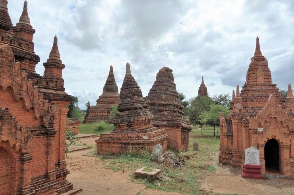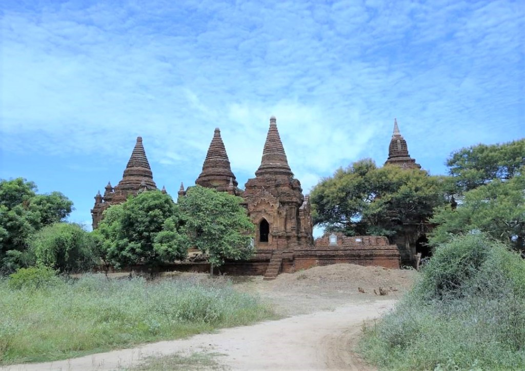 2016年8月に発生したミャンマー中部大地震の被害を受けた遺跡の修復工事の終わっていない仏塔が、いくつも見られた。以前は登れた仏塔や寺院も、崩れる危険性があるとのことで階段が閉鎖されているところもあった。