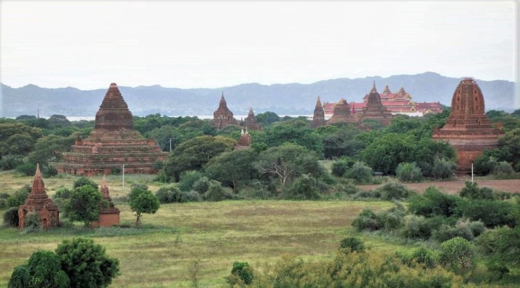 ミャンマーのイラワジ川中流の東岸に広がる平原にバガン遺跡群がある。数千もの仏塔や寺院が点在して立ち並ぶ姿は、荘厳な風景を形成している。
