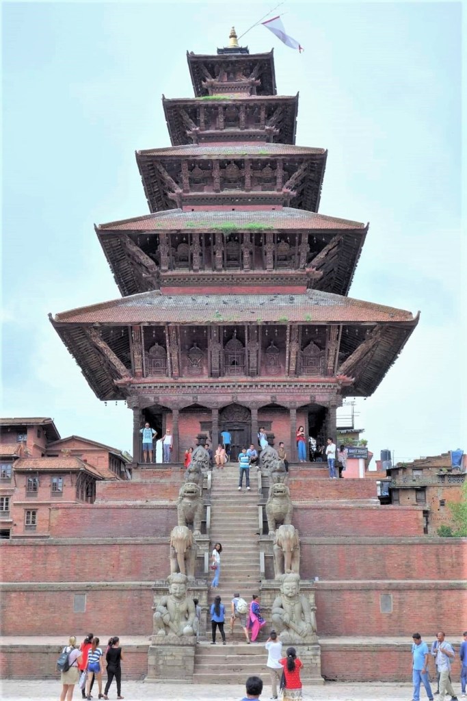 トウマディー広場にネパールで最も高層でシンボル的な「ニャタポラ寺院」がある。高さ約30メートルの「五重塔」は迫力満点。土台部分には急な石段があり、その両側には武器を持った伝説の戦士や象、獅子の石像が一対ずつ配されている。