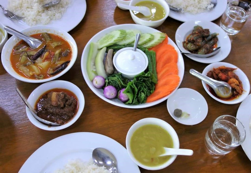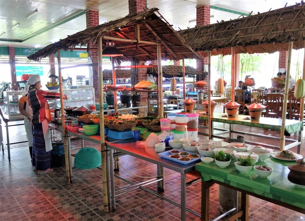 ヤンゴンに戻る途中、運転手と共にミャンマー料理