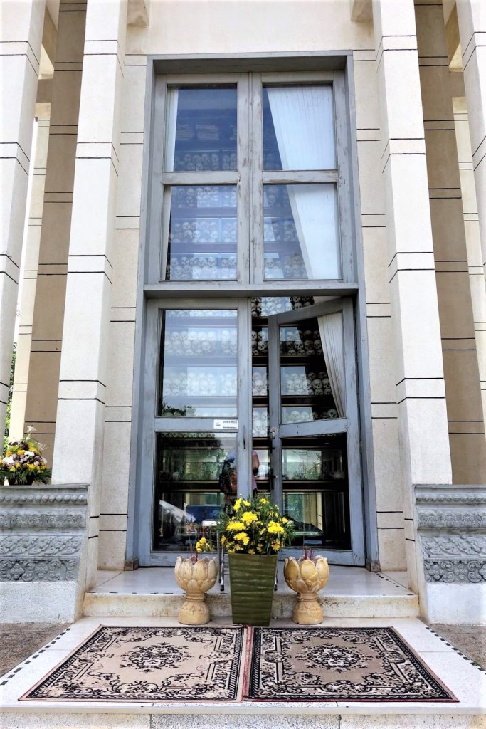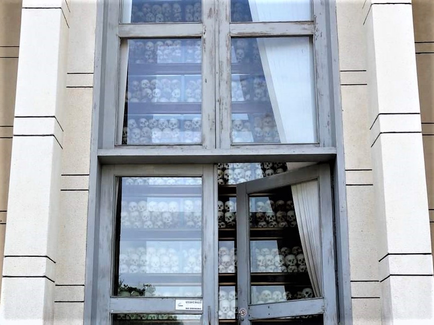 慰霊塔内部には、おびただしい遺骨が収容されている。ここは17段に分かれているが、これはポル・ポト派がプノンペンに侵攻し、大量虐殺が始まった1975年4月17日の「17」を表している。