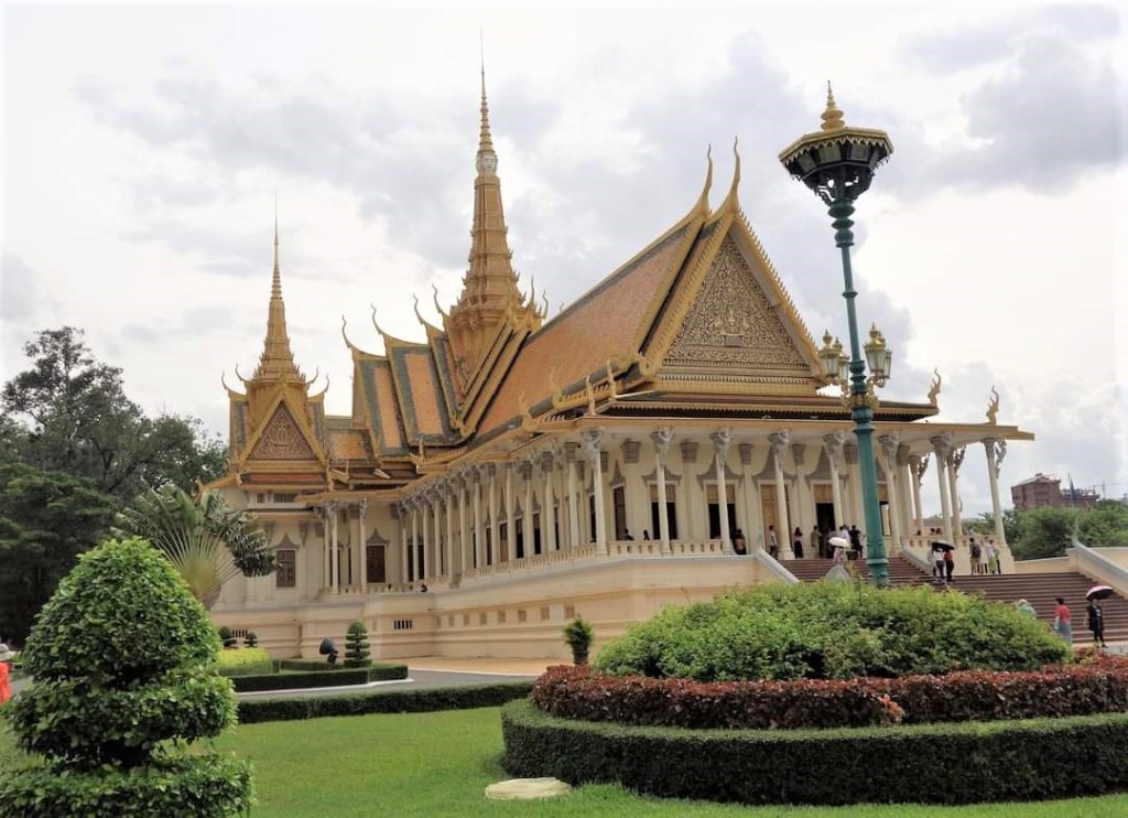 「王宮」黄金色の瓦屋根とクメール様式の尖塔が印象的な即位殿