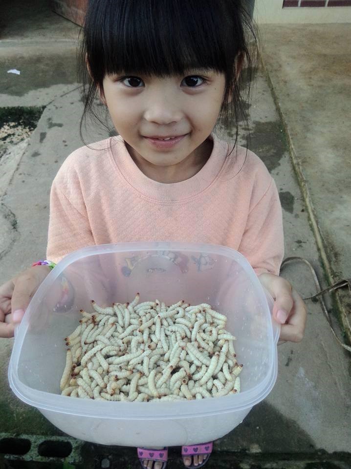 「竹虫」はタケノメイガの幼虫で、タイでは「ロッドゥアン(急行列車)」や「シンカンセン(新幹線)」と呼ばれています。英名は「Bamboo worm」