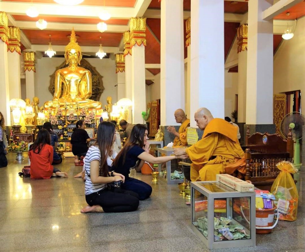 タンブン喜捨をするところ、僕も2番目に大きなお札をタンブンした