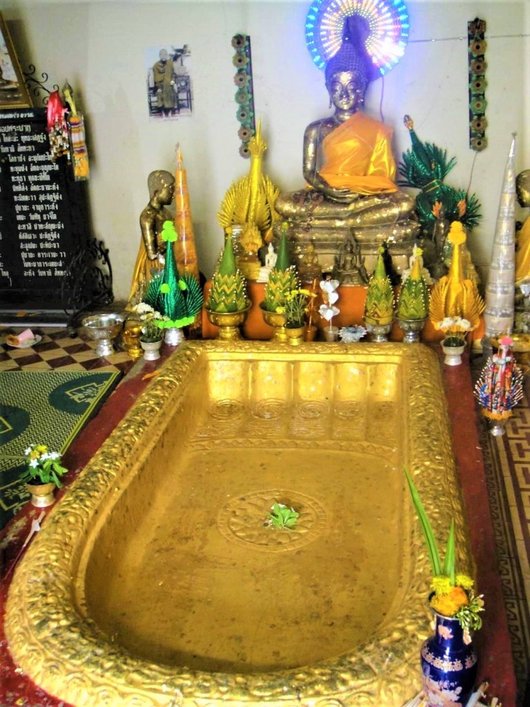 ウドンタニの郊外にあるワット・プラタート・プラ・プッタバート・ブアボックという長い名の寺院に、黄金に輝くお釈迦様の足跡「釈迦仏足跡」が安置されていた。小さな寺院だけど毎年3月の祭りの日には、全国各地から大勢の参拝者が訪れ賑わうという。