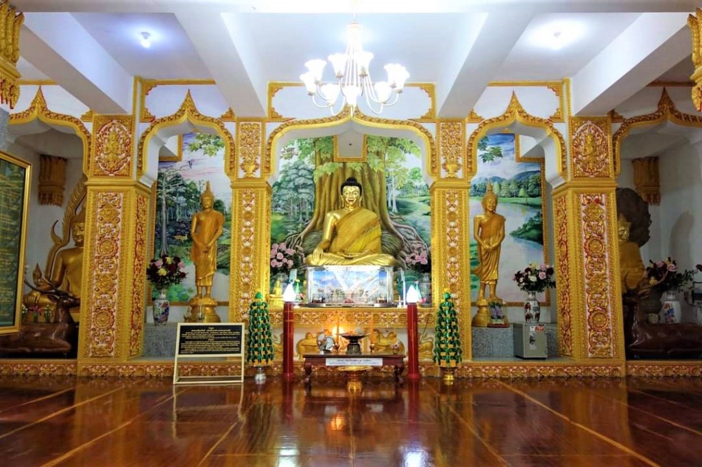 プーファレック山の山頂に佇む「ワット・タムピアン寺院」 丸い窓にも黄金の仏像が鎮座している