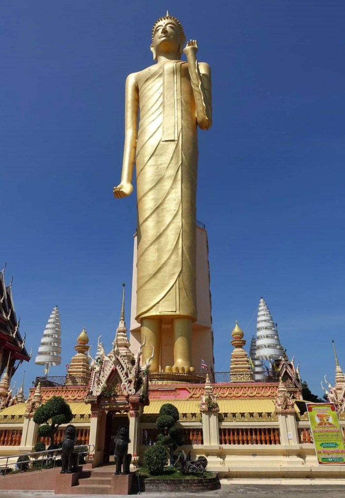 ロイエット市内のどこからでも見える高さ60mの立像は、タイで最ものっぽな仏像である。立像の足元へ近づくとお顔が見えない。